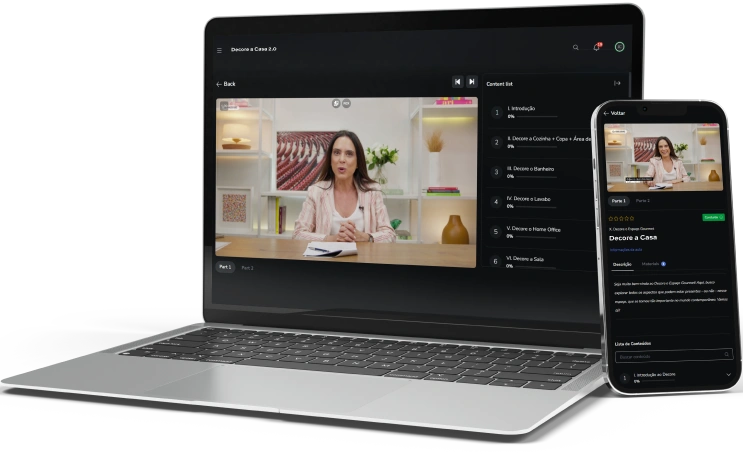 O Decore a Casa 2.0 está em uma plataforma virtual, que você pode acessar do celular, computador, notebook ou tablet, para assistir quantas vezes você quiser durante 24 meses!